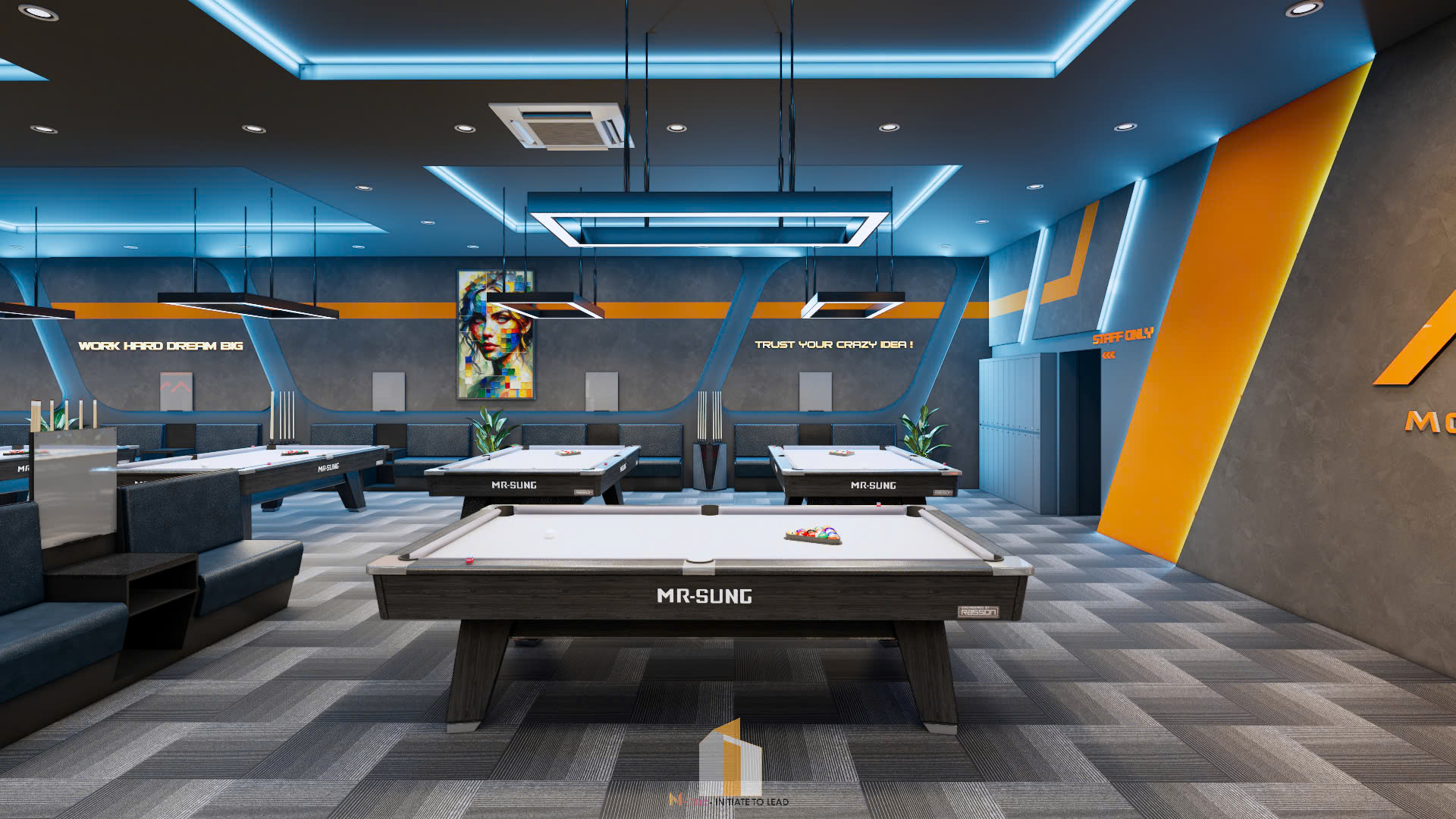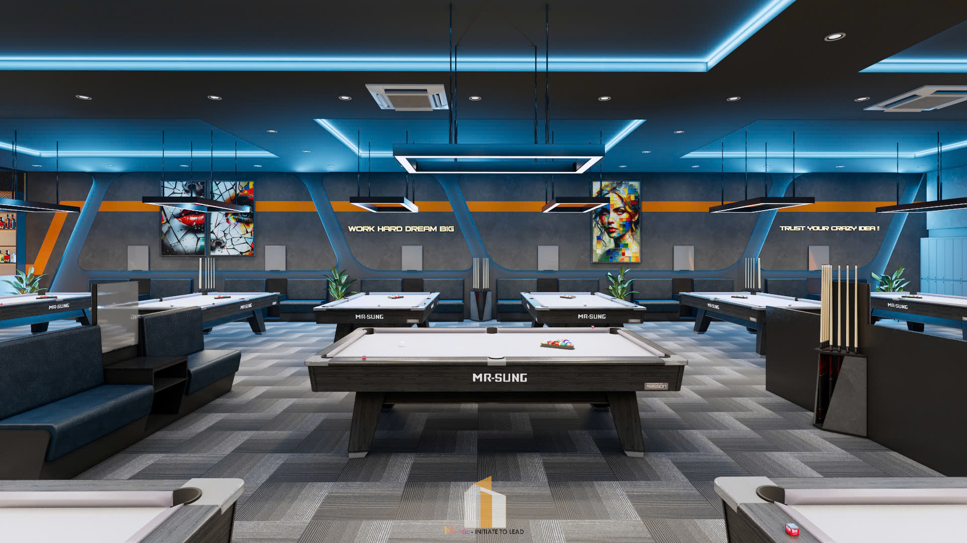 Câu lạc bộ không gian Billiards chất lượng cao, tiêu chuẩn chuyên nghiệp, thiết kế đẹp mắt, sang trọng , đẳng cấp, và có không gian thoải mái để chơi billiards. Tự tin đón khách , đẹp để đông khách