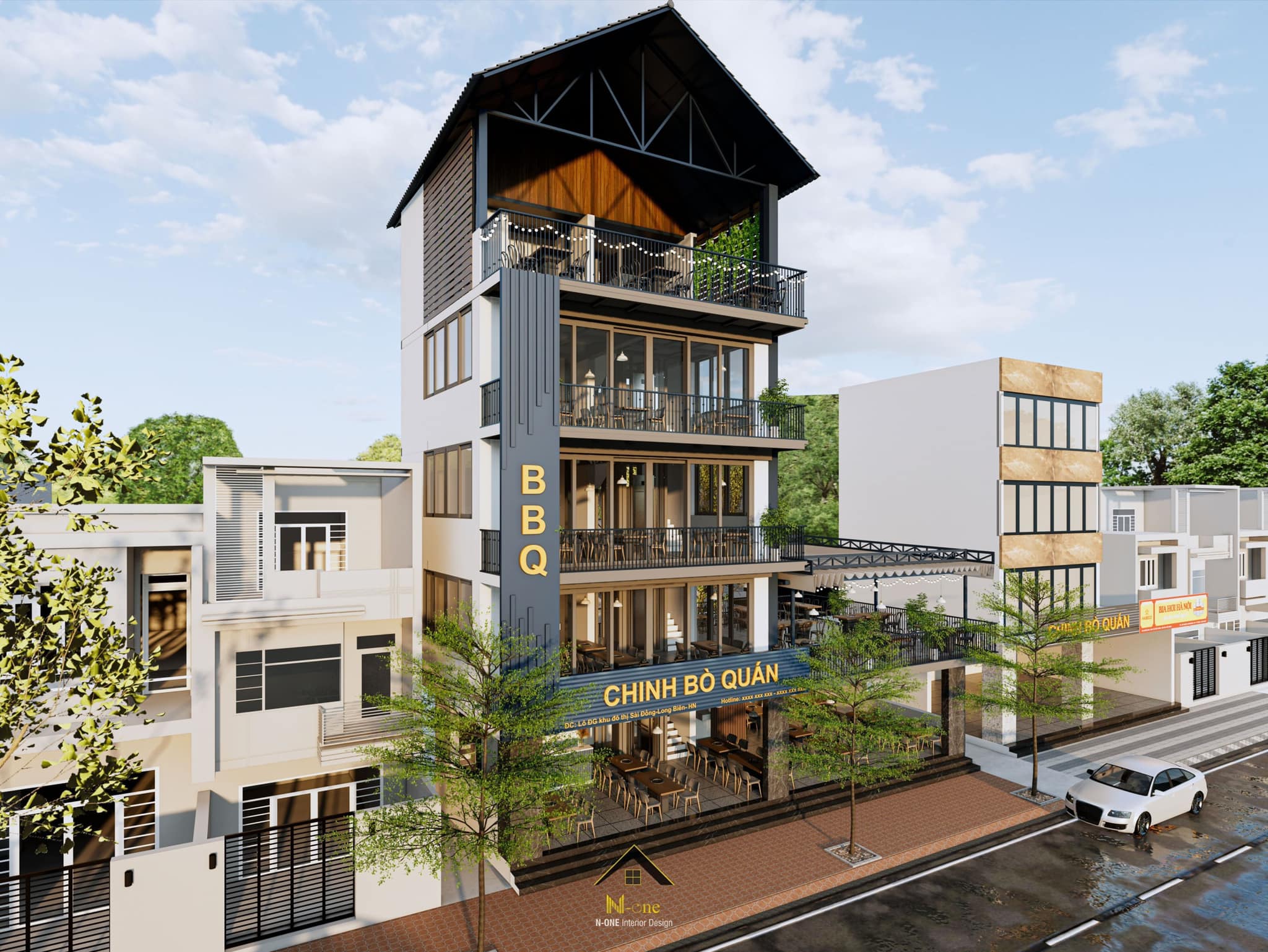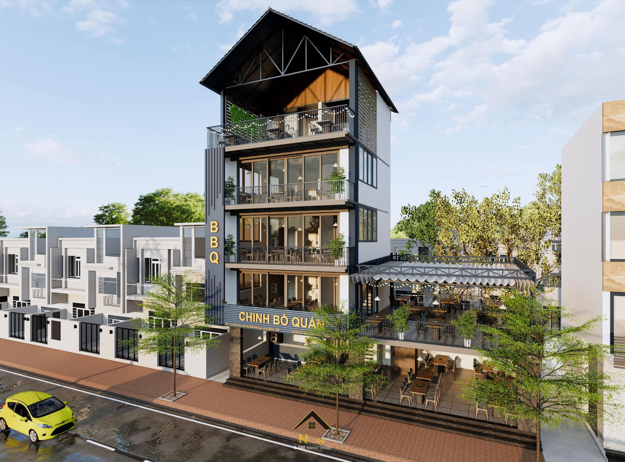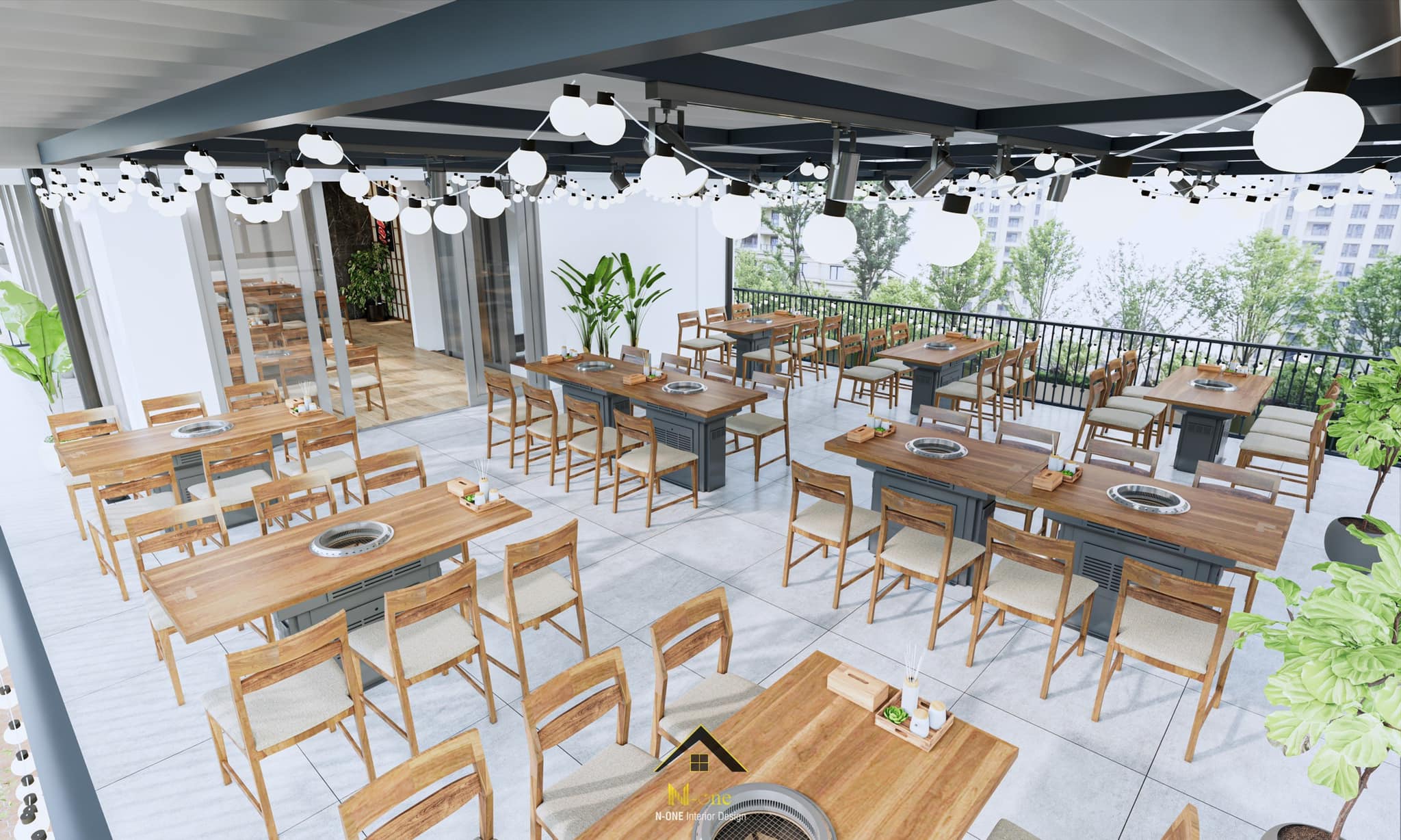 Thiết Kế Thi Công Nhà Hàng Lẩu Nướng Góc Phố
